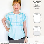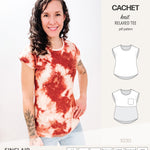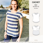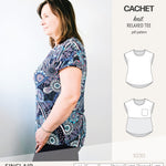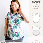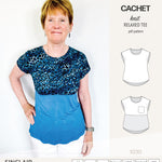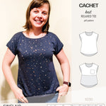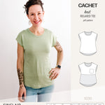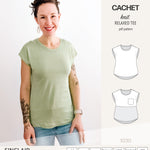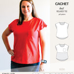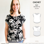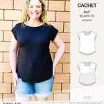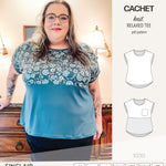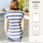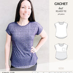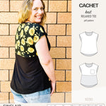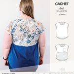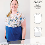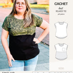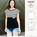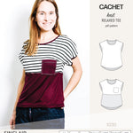 Cachet relaxed cut knit tee color blocked with a pocket (PDF)