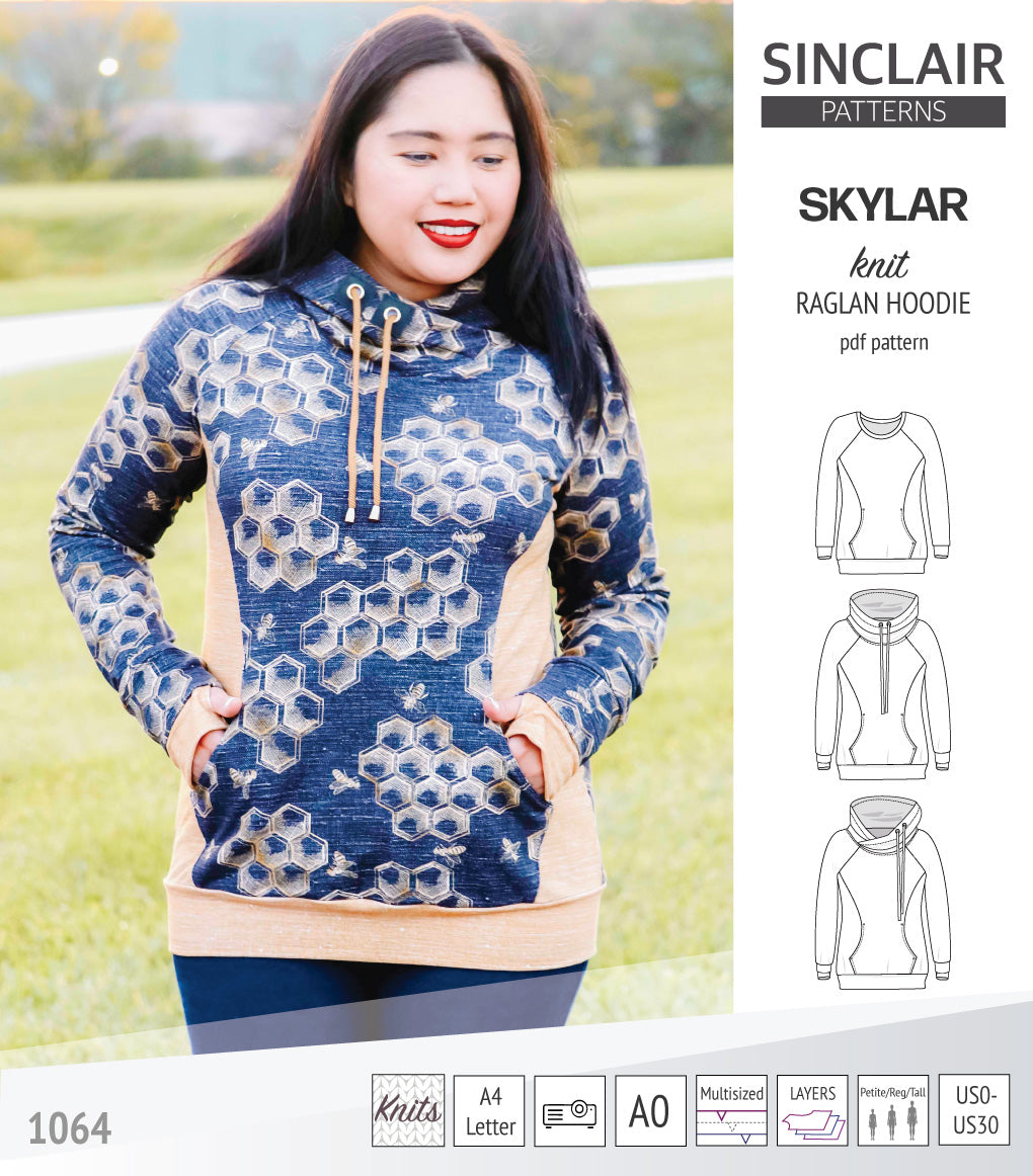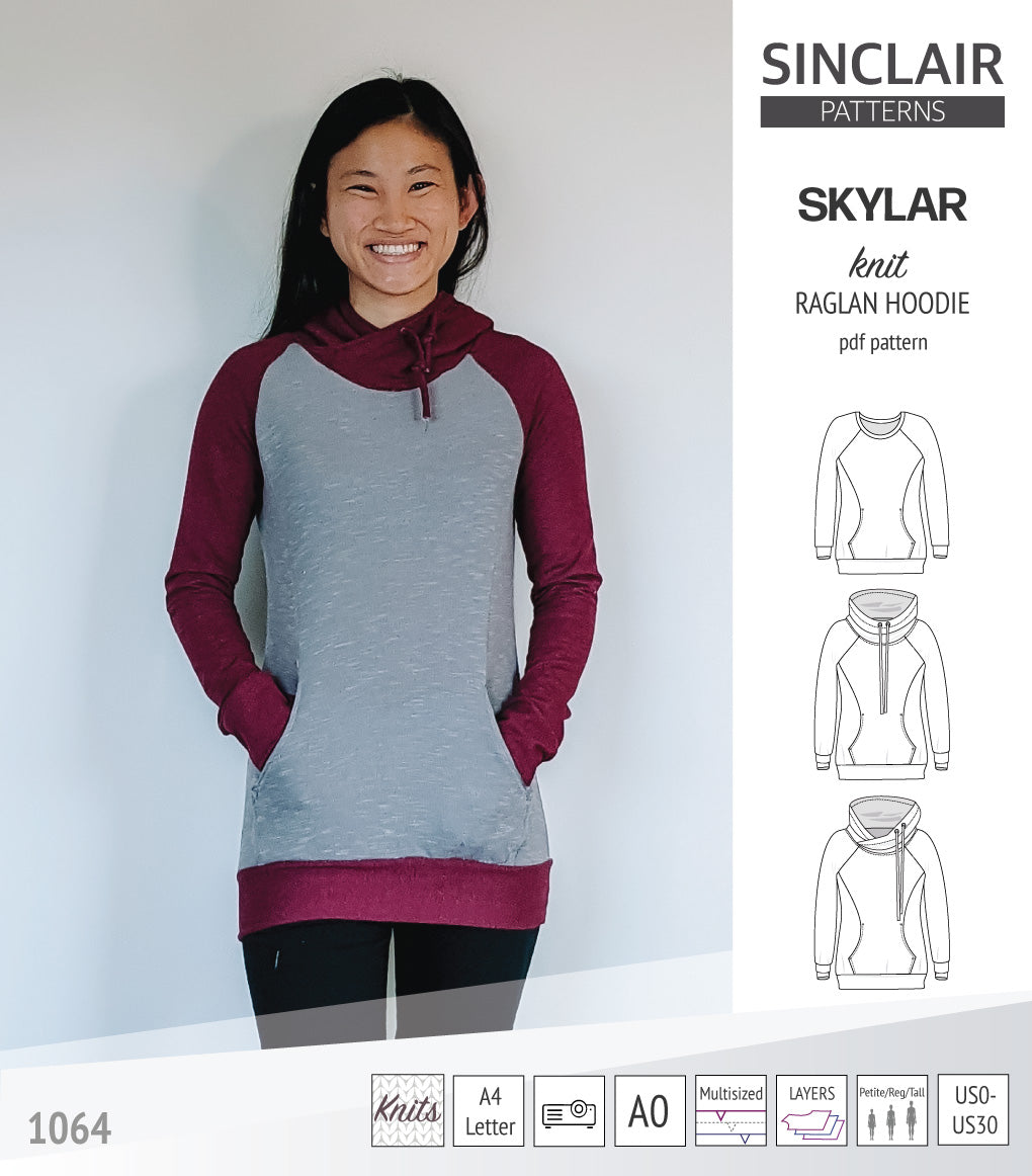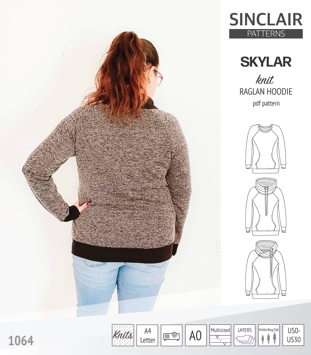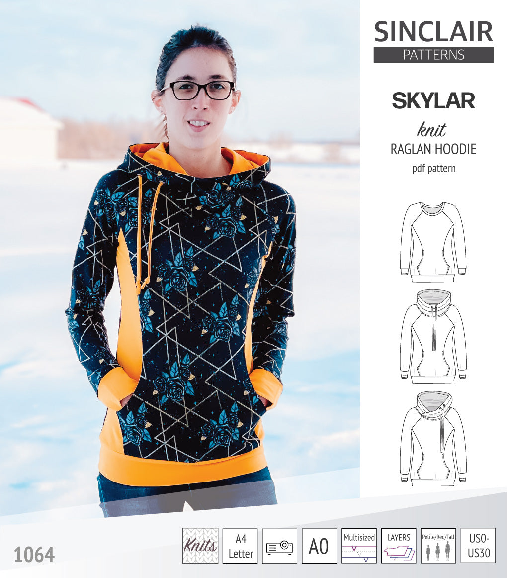 Pdf sewing pattern S1064 Skylar hoodie with pocket hood and cowl by Sinclair Patterns