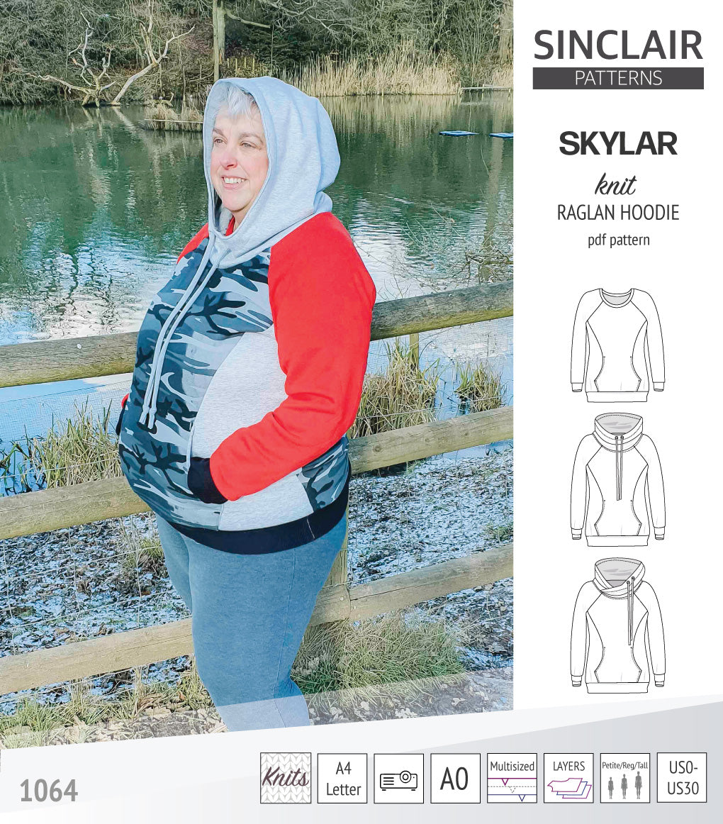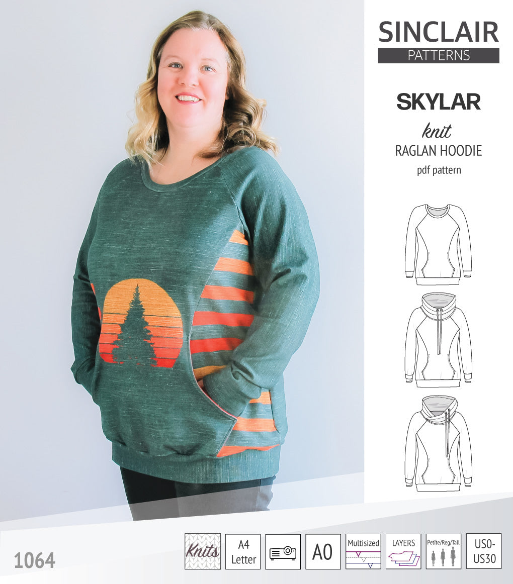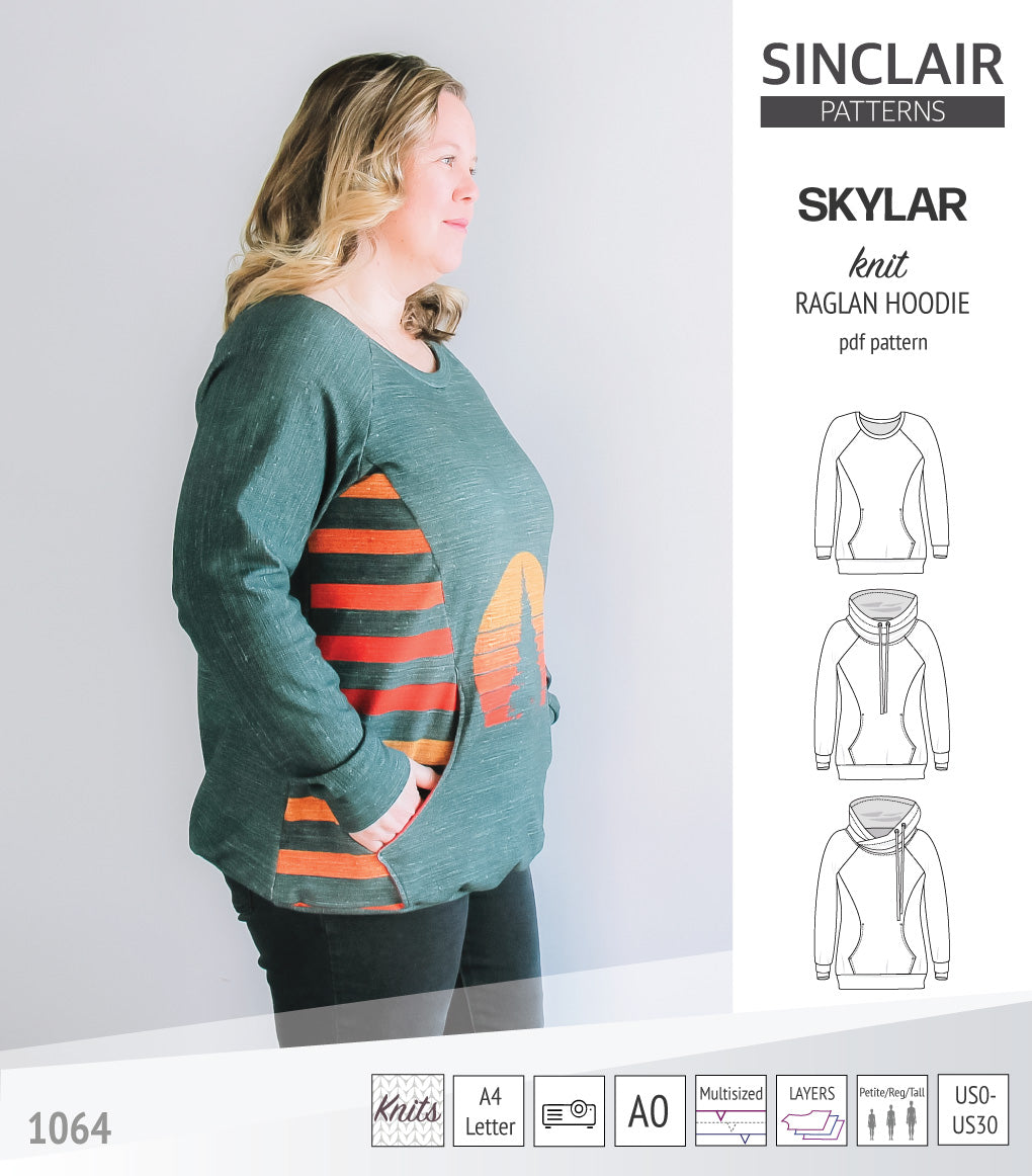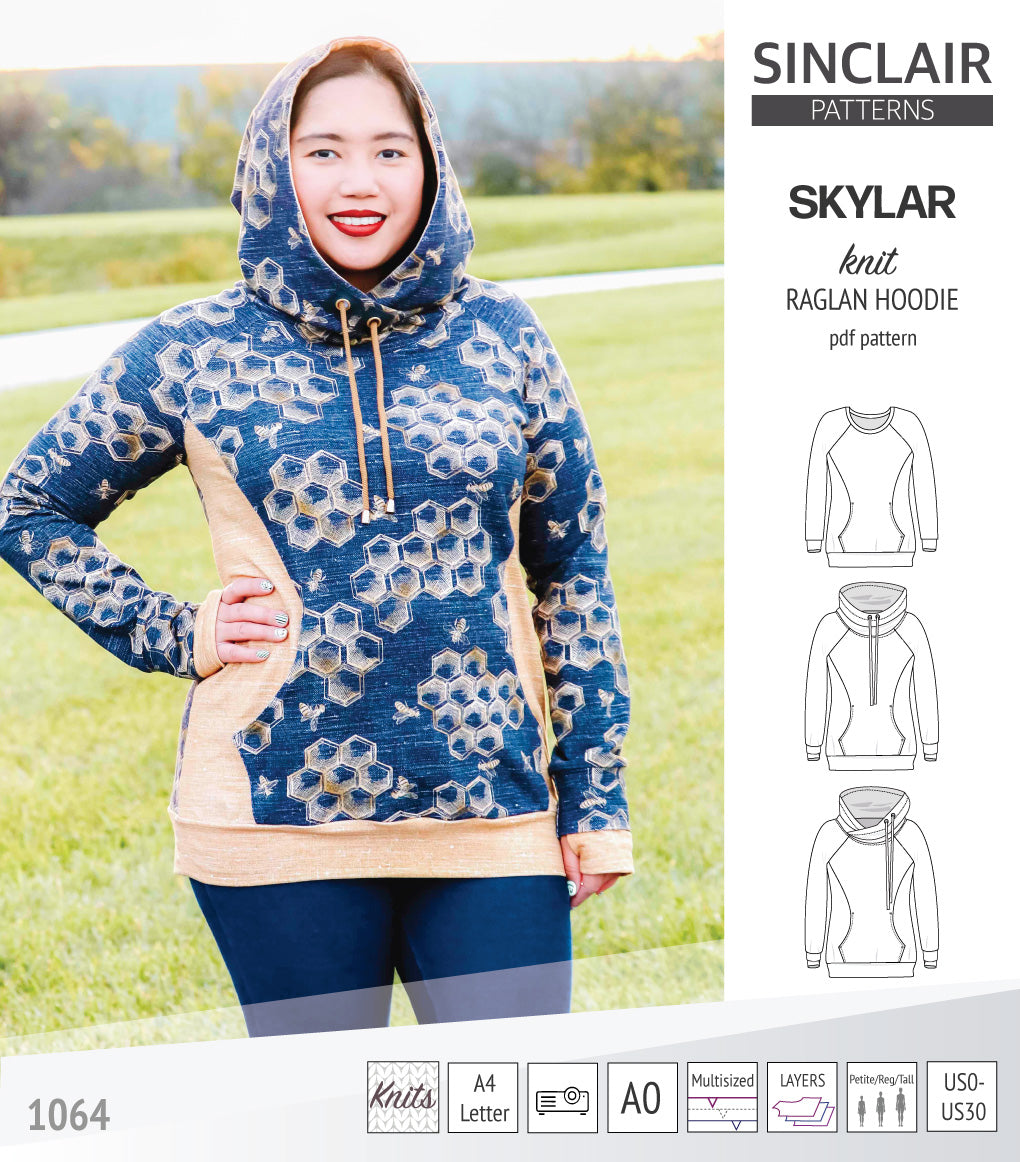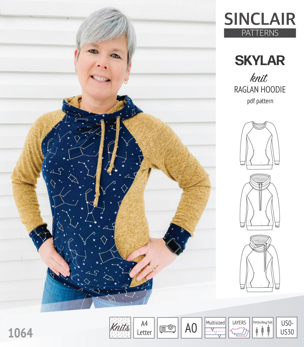 Pdf sewing pattern S1064 Skylar hoodie with pocket hood and cowl by Sinclair Patterns