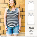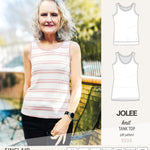 I have several tank top patterns, but there is something special about the Jolee. I have made 3 since I bought the pattern and I need more. The neckline depth is perfect, there is no gaping at the neckline or armhole and it covers the bra straps.