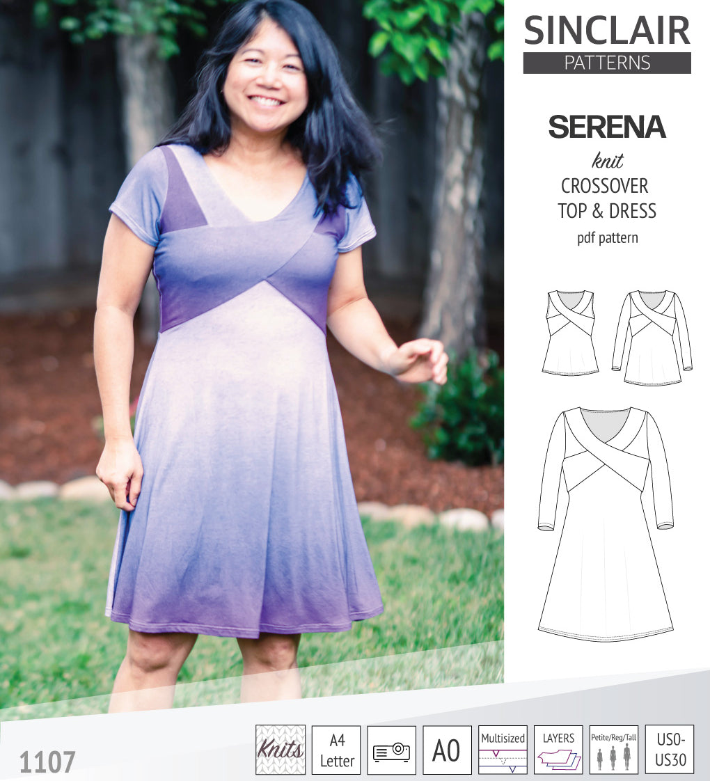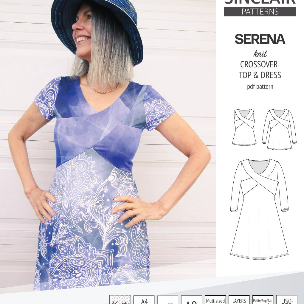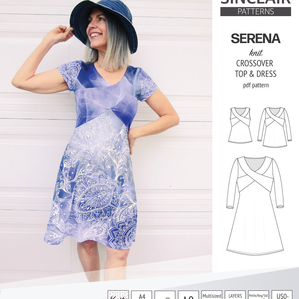 PDF Sewing pattern Sinclair Patterns S1046 Claudia godet style knit dress or tunic with flutter sleeves