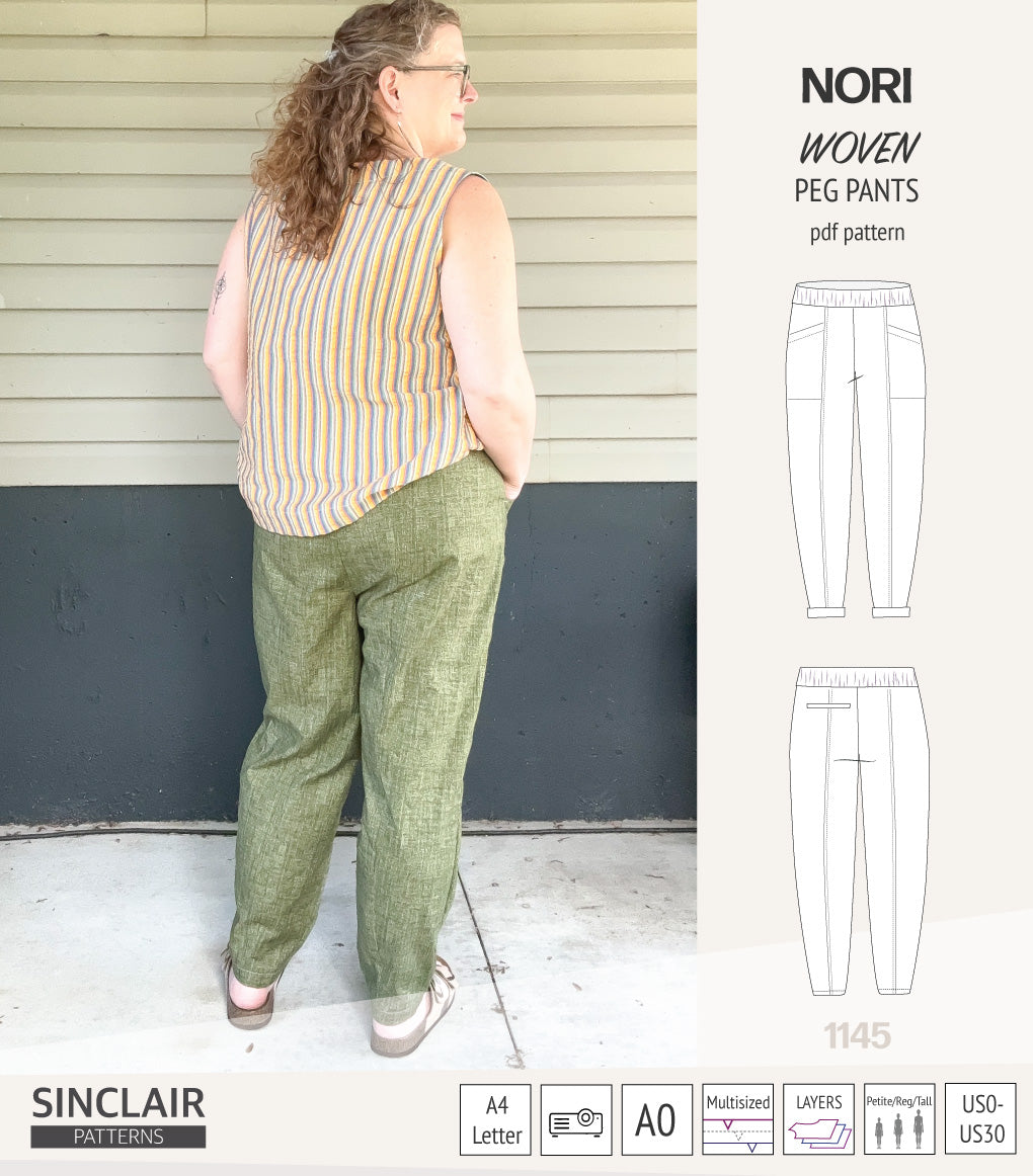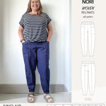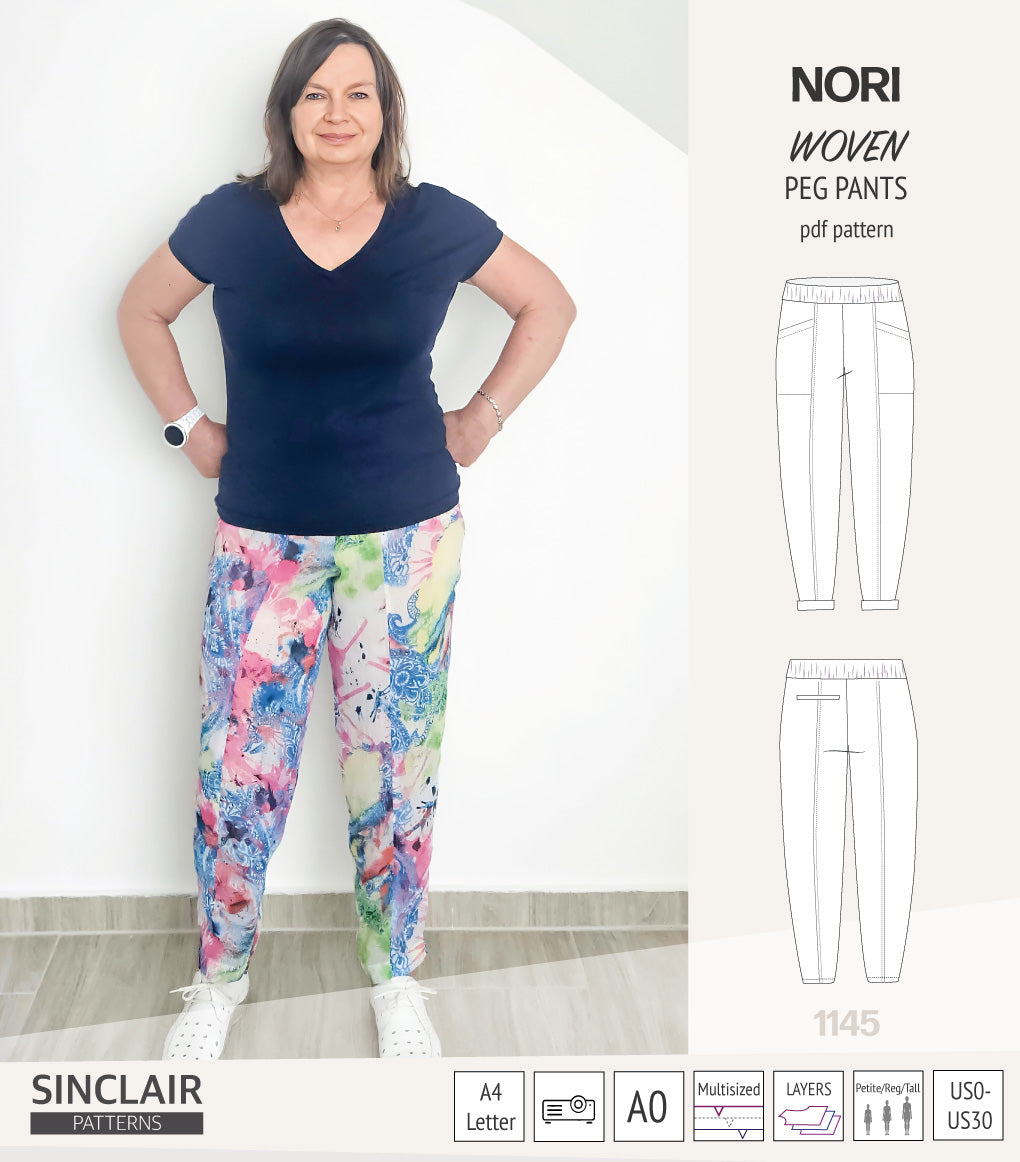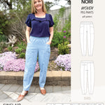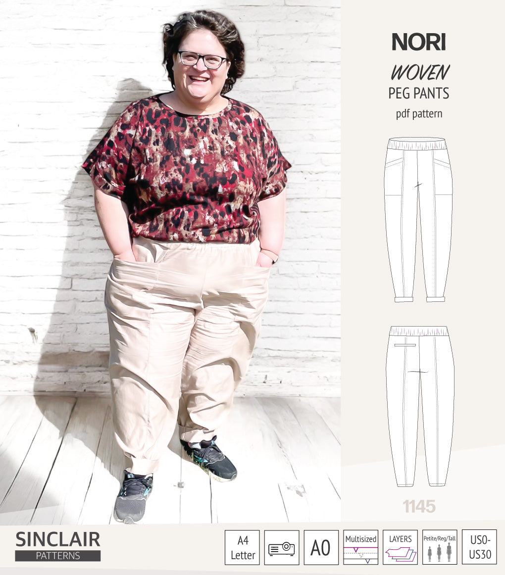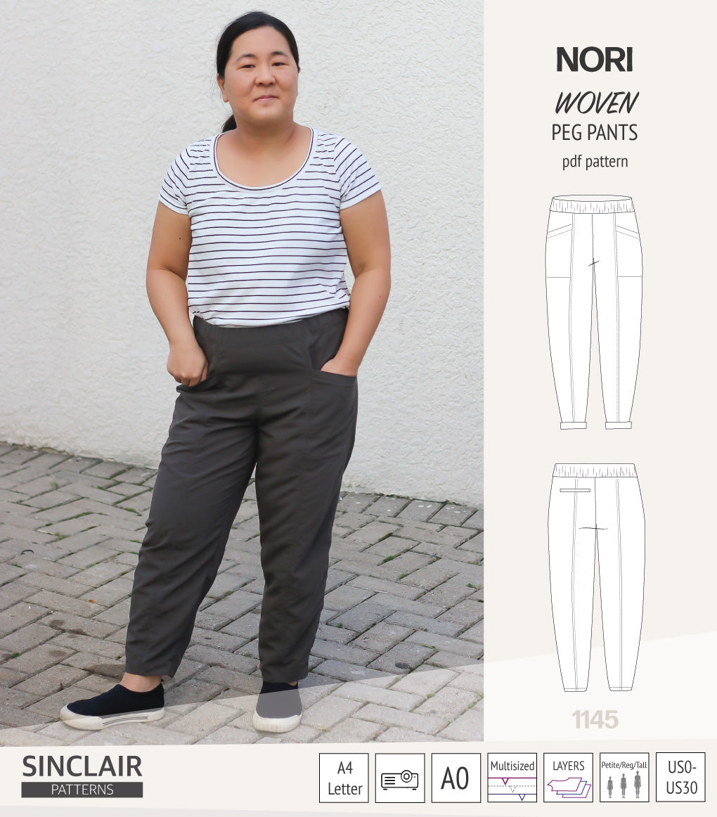 Featuring: Easy-fitting peg-style trousers, relaxed at the hips and knees and tapered to the ankles, with center front and back seams along the legs. Designed for woven fabrics. These trousers come in ankle length and can be hemmed or finished with simple cuffs. The waistband is fitted with a wide elastic (32 mm / 1 1/4 in). They can be finished with slide-in front pockets or a simple back zippered pocket.