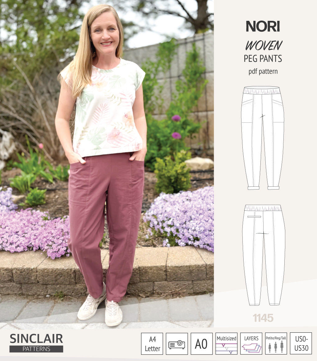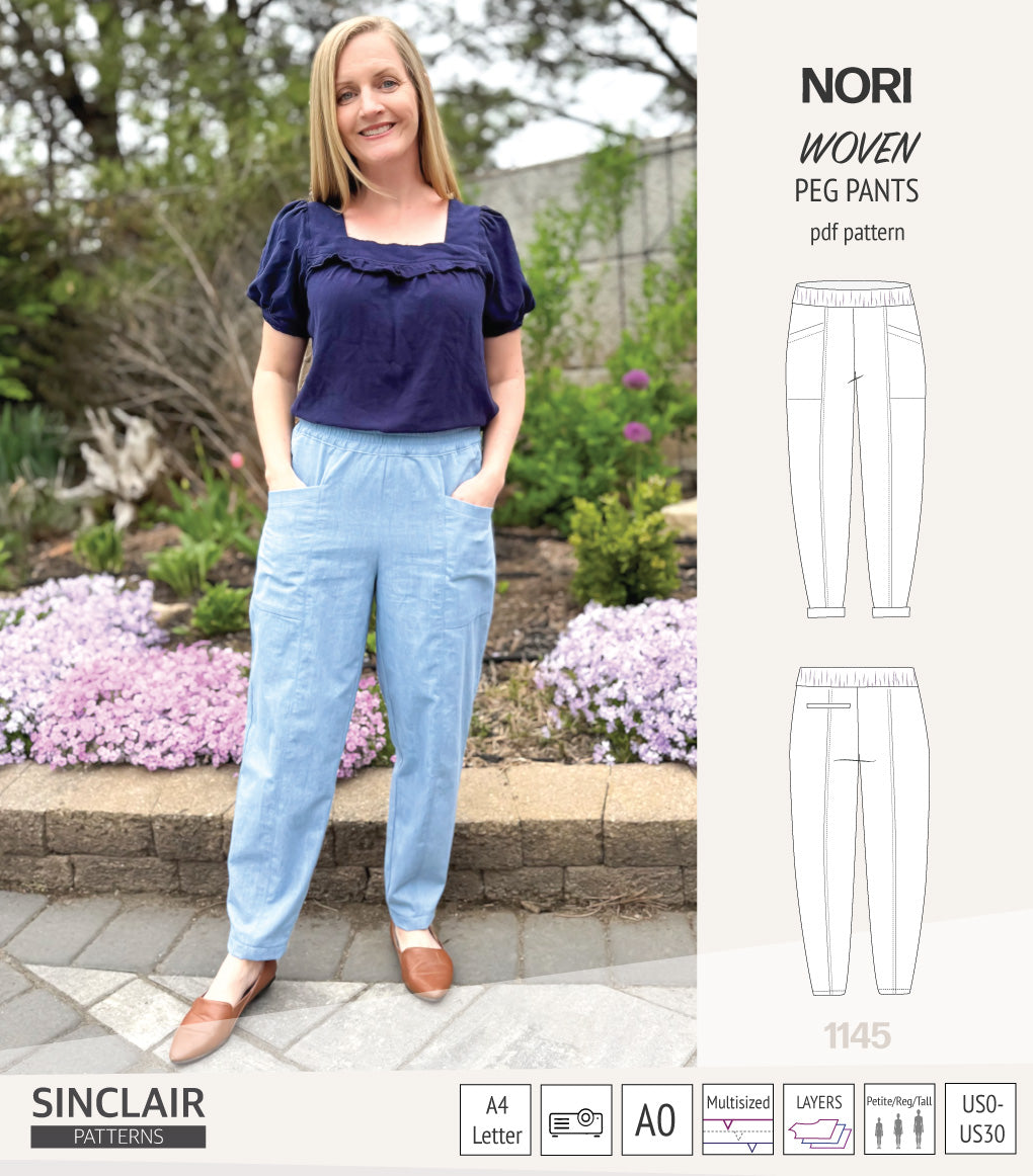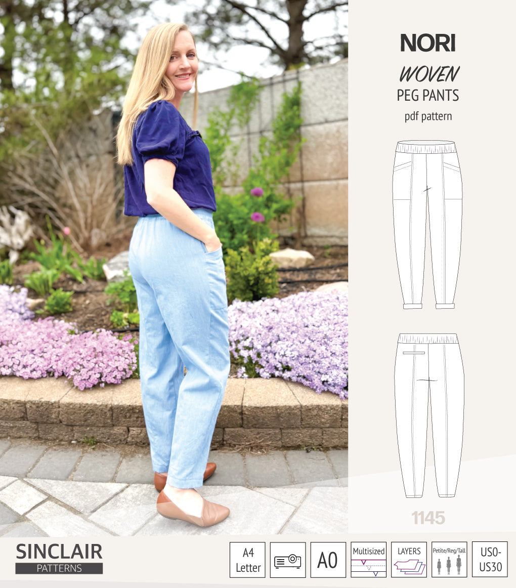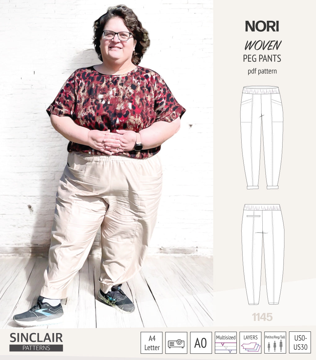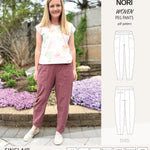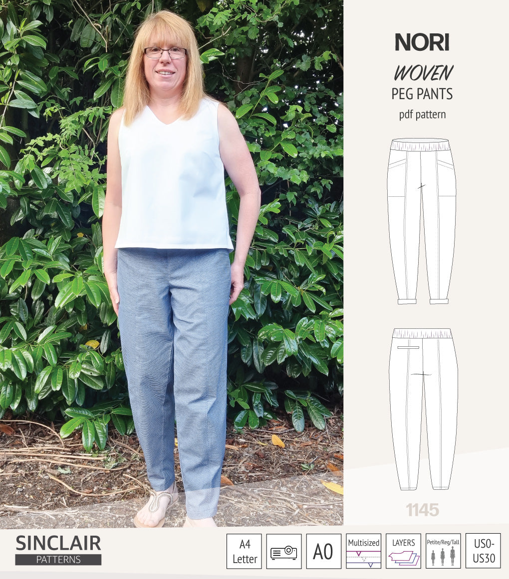 Featuring: Easy-fitting peg-style trousers, relaxed at the hips and knees and tapered to the ankles, with center front and back seams along the legs. Designed for woven fabrics. These trousers come in ankle length and can be hemmed or finished with simple cuffs. The waistband is fitted with a wide elastic (32 mm / 1 1/4 in). They can be finished with slide-in front pockets or a simple back zippered pocket.