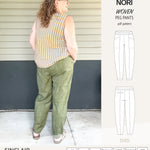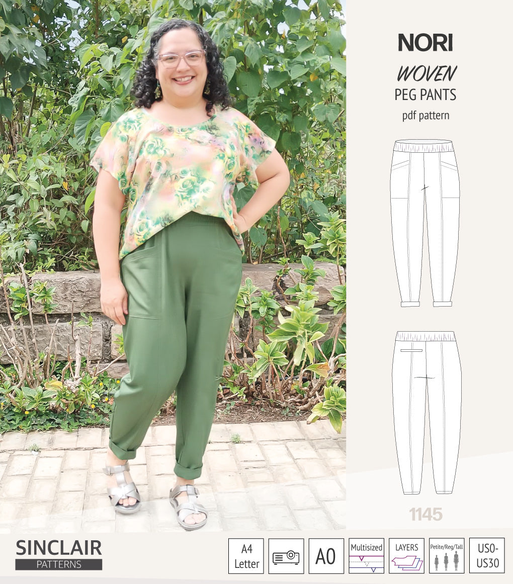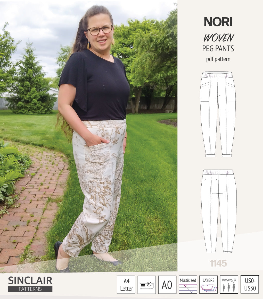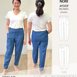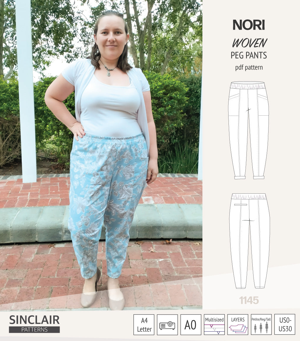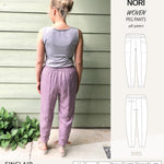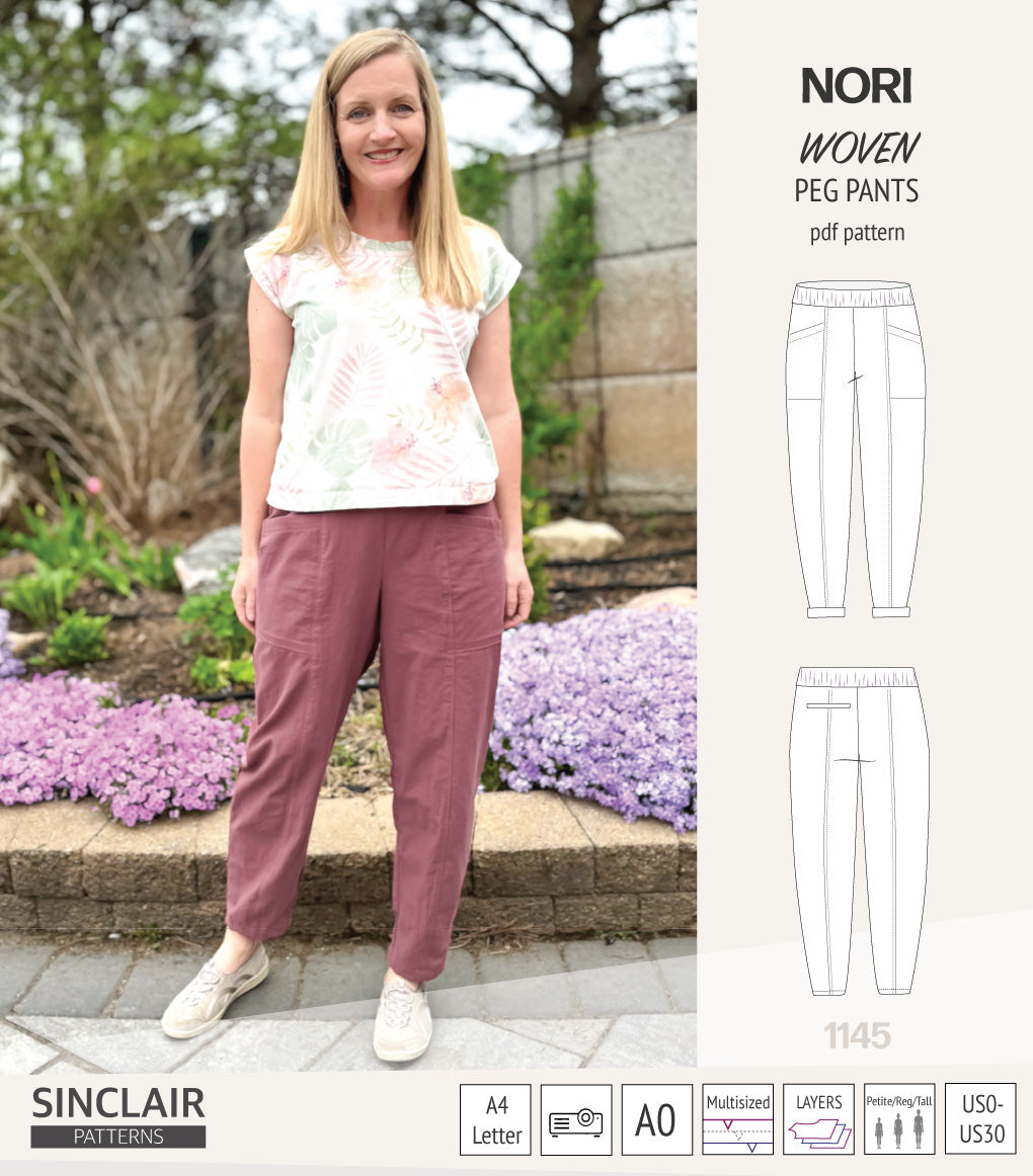 Featuring: Easy-fitting peg-style trousers, relaxed at the hips and knees and tapered to the ankles, with center front and back seams along the legs. Designed for woven fabrics. These trousers come in ankle length and can be hemmed or finished with simple cuffs. The waistband is fitted with a wide elastic (32 mm / 1 1/4 in). They can be finished with slide-in front pockets or a simple back zippered pocket.
