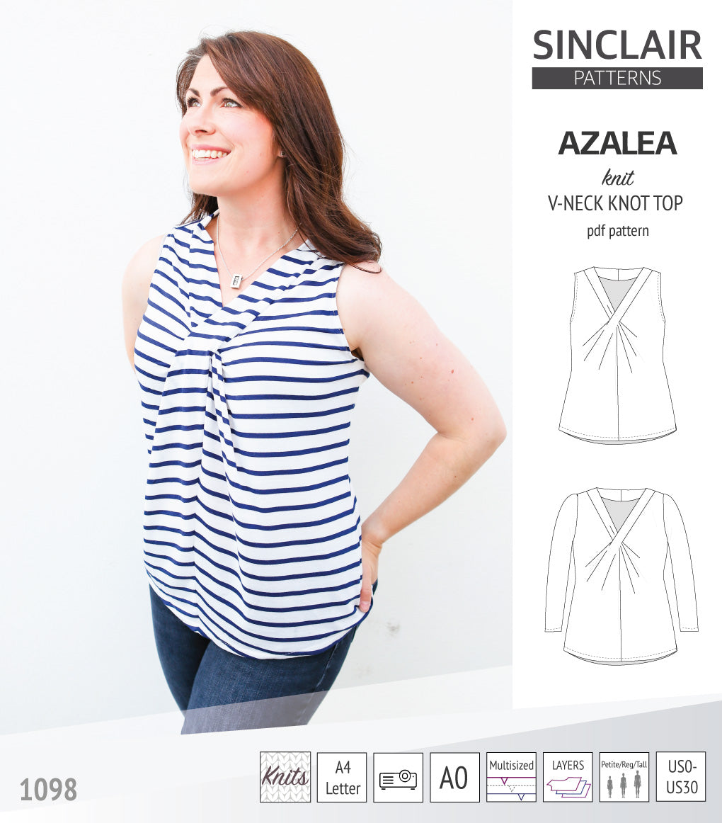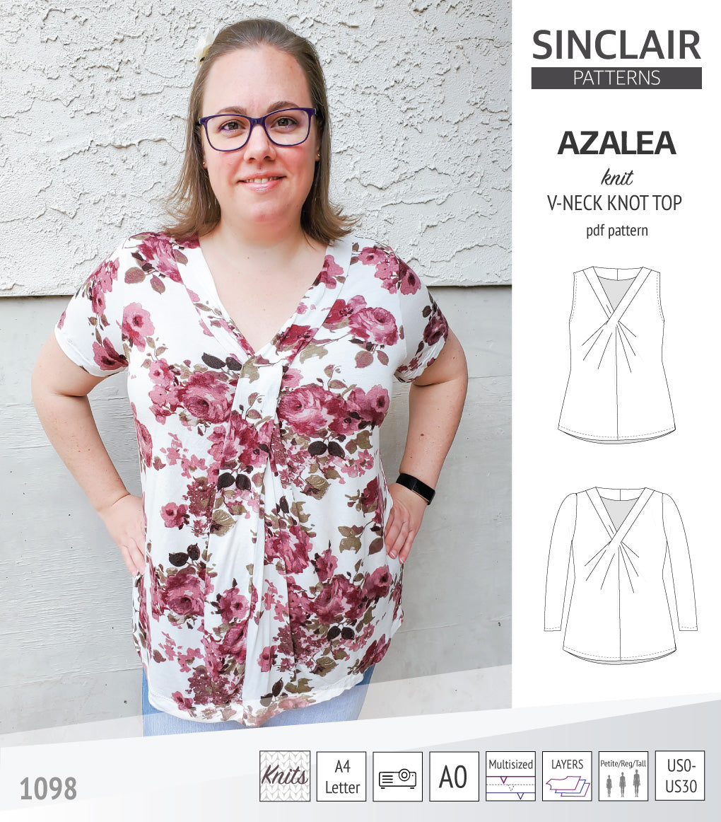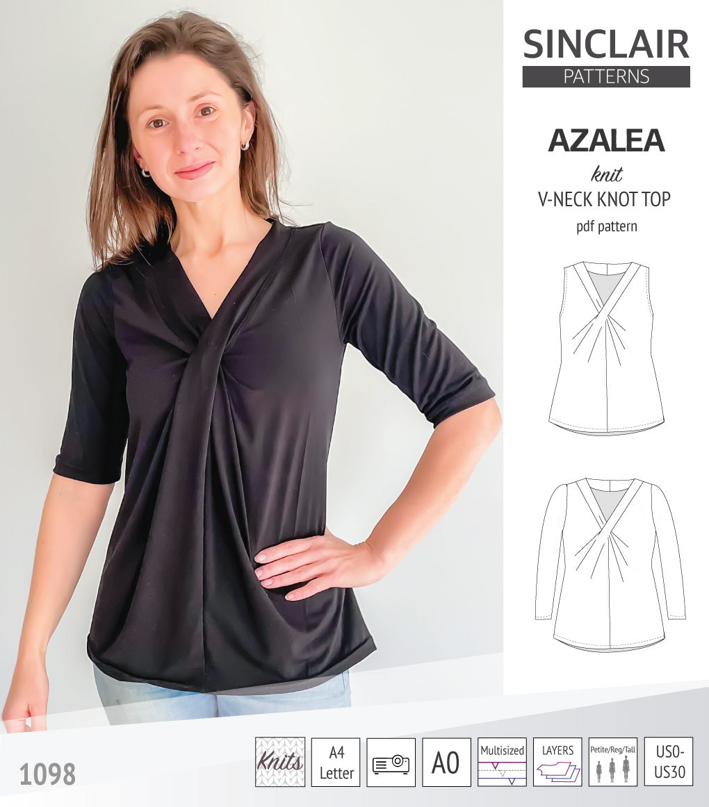 Azalea v-neck knot top for knit fabrics (PDF)