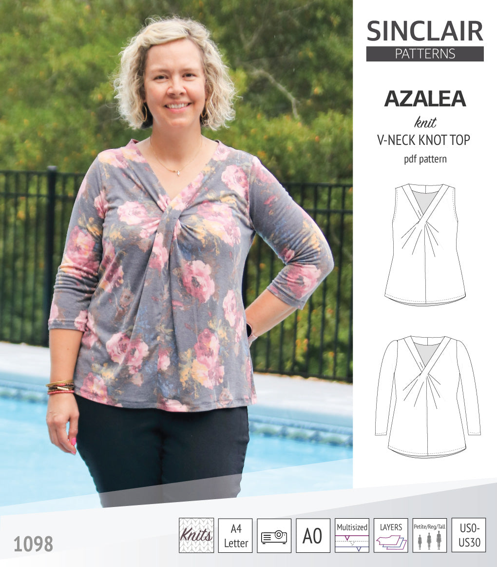 Azalea v-neck knot top pdf sewing pattern