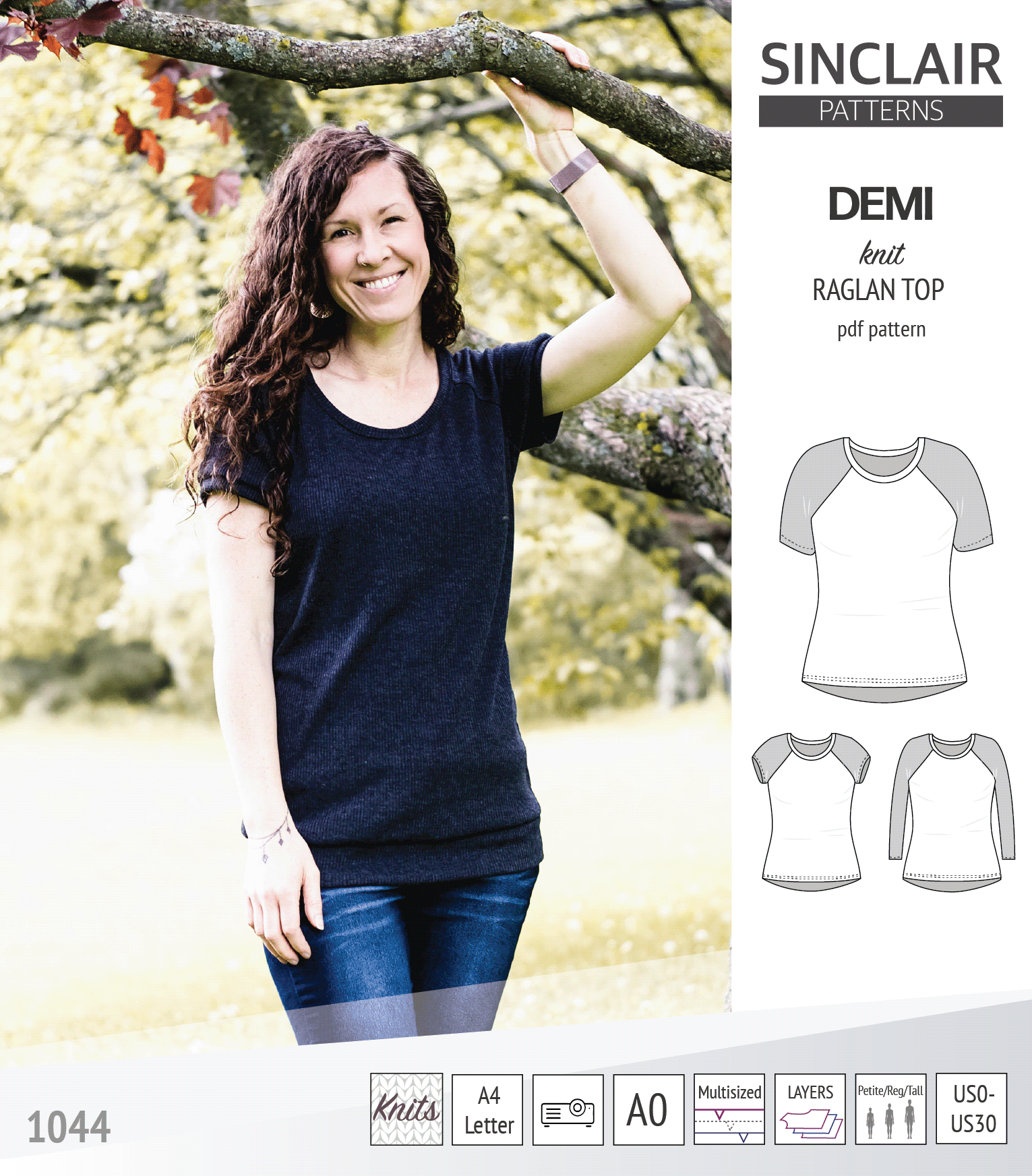 I love Sinclair patterns! I find them easy to sew and the finished garment always looks great! The Demi raglan is a quick make. It’s fitted but not tight. I love the curved hemline. I made the long sleeve version in a petite. I’ve already made 2 and will definitely make more!