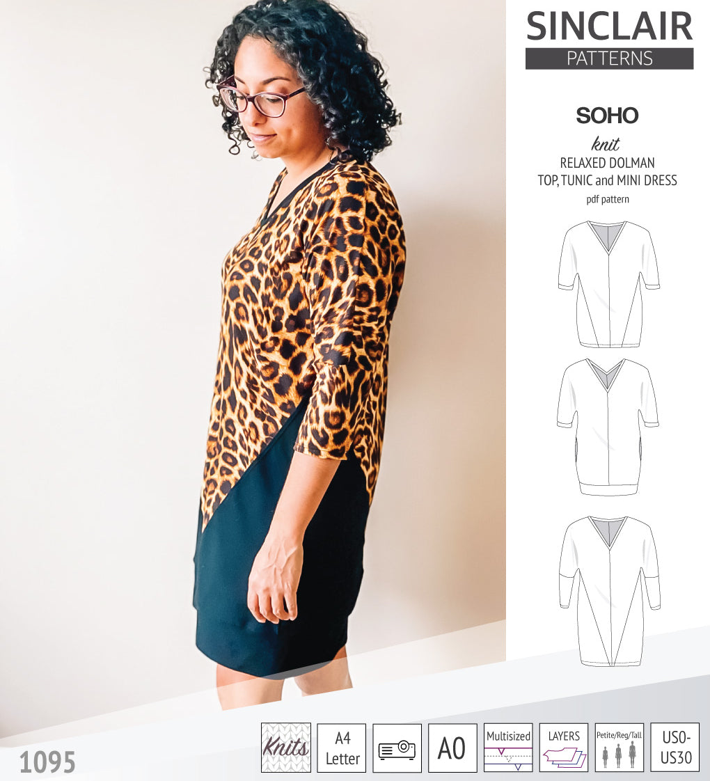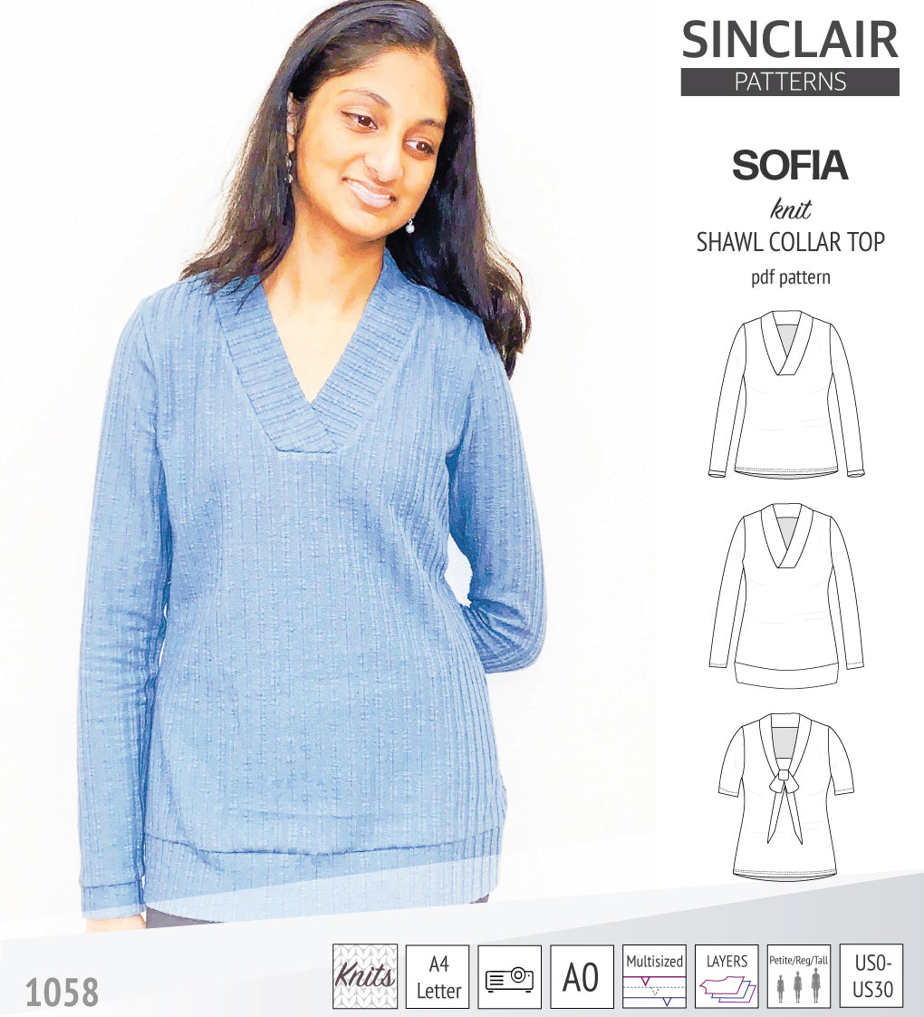 Pdf sewing pattern S1049 Jemma knit tunic with asymmetrical collar and pockets